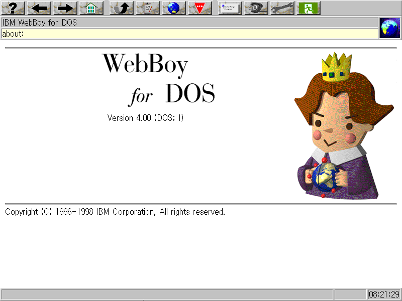 IBM WebBoy for DOS is.. interesting. it's an entirely DOS based browser and e-mail client for Japanese DOS systems, seemingly designed specially for the Palmtop PC 110 (although will run on standard PCs of course). i found it while scrolling on archive.org, and immediately knew i had to try it. getting it actually set up kind of SUCKED, though. a combination of the language barrier as well as using a minimal copy of Microsoft LAN Manager in the backend(?????) which i haven't used myself made it difficult to actually get it functioning initially.