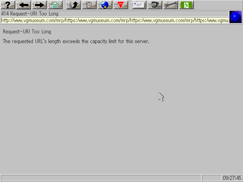 - https isn't even recognized as a valid protocol, so it tries to append it to the end of the current url as if it was a relative page link (i.e http://wiby.org/surprise/https://www.vgmuseum.com)