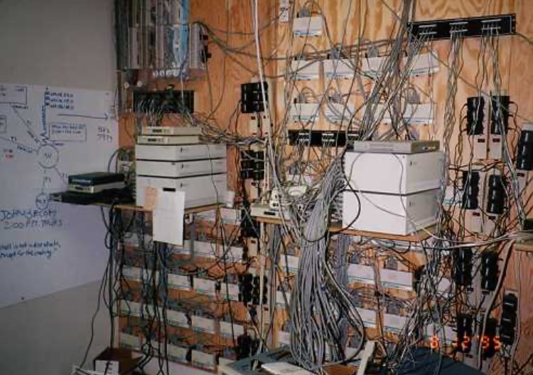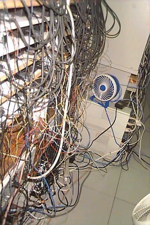 Some of my favorites are the horrendous ISP closets from the early dial-up era.