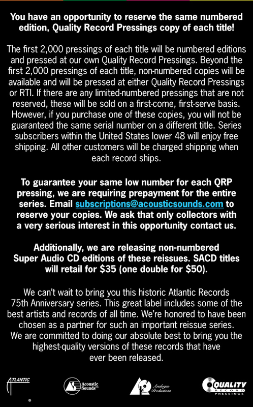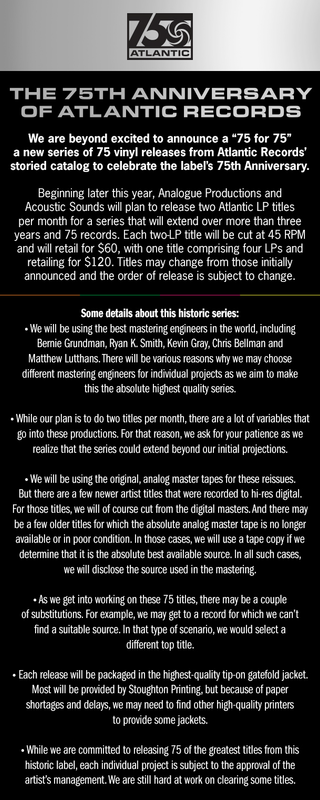 Posted: Wed Sep 13, 2023 1:53 pm Post subject: Analogue Productions Atlantic 75th Series |